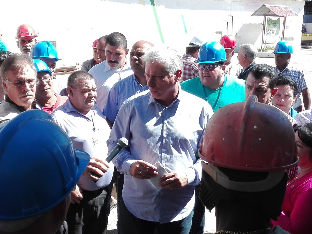 @DiazCanelB recorre el central Antonio Guiteras de Puerto Padre en Las Tunas, conversa con sus trabajadores, conoce sobre las condiciones de trabajo, salario y alimentación. Los directivos de Azcuba aseguran que la provincia cumplirá su Plan de zafra este año. #SomosCuba pic.twitter.com/oy0TkSa90A