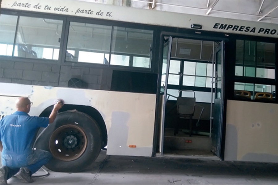 En la Unidad Empresarial de Base (UEB) Ómnibus, el vehículo 5420 será el primero en salir: tras finalizar pintura, montaje de asientos y limpieza final del piso, enfrentará prueba de carretera y somatón en Guanajay durante la próxima semana.