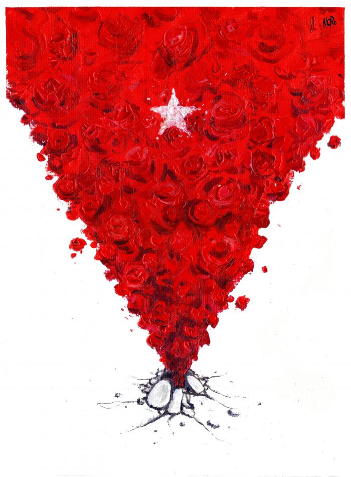 Caricatura que acompaña al mensaje en el diario Granma. Autor: Moro.