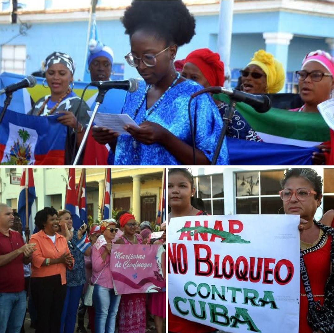 En Cienfuegos, un grupo diverso de mujeres, representando todas las profesiones y oficios, se congregó en el Paseo del Prado para expresar su firme rechazo al bloqueo impuesto por EE. UU. y su apoyo a la paz mundial.